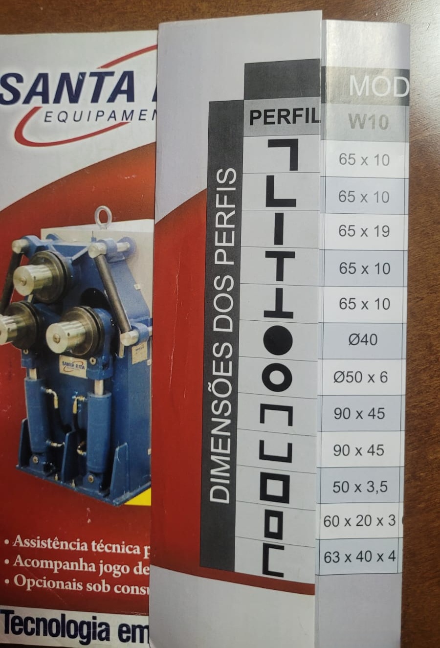 990 - CALANDRA DE PERFIL SANTA RITA SR-W10 PH Aperto hidráulico Capacidade de dobra conforme tabela em anexo
